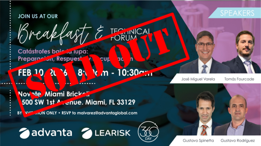 The Breakfast & Technical Forum, organized by Advanta-Learisk, is officially sold out. Now in its fifth edition, this meeting and discussion space has become a key reference event during Miami Reinsurance Week. Unfortunately, we have reached full venue capacity and are unable to offer additional spots.
