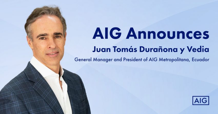 AIG is pleased to announce that Juan Tomás Durañona y Vedia has been appointed General Manager and President of AIG – Metropolitana, subject to local regulatory approvals.