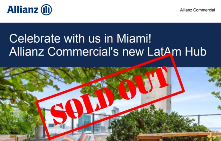 Allianz Commercial announces that their Miami Reception that will take place during the Miami Reinsurance Week 2026 is officially sold out.