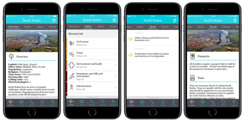 This is particularly handy during a crisis situation where fast and reliable communication is essential. However, the most powerful feature of the app is push notifications that gets sent to the traveller’s home screen notifying them of risks near their location. This allows the traveller to be aware and adapt their travel schedule as necessary