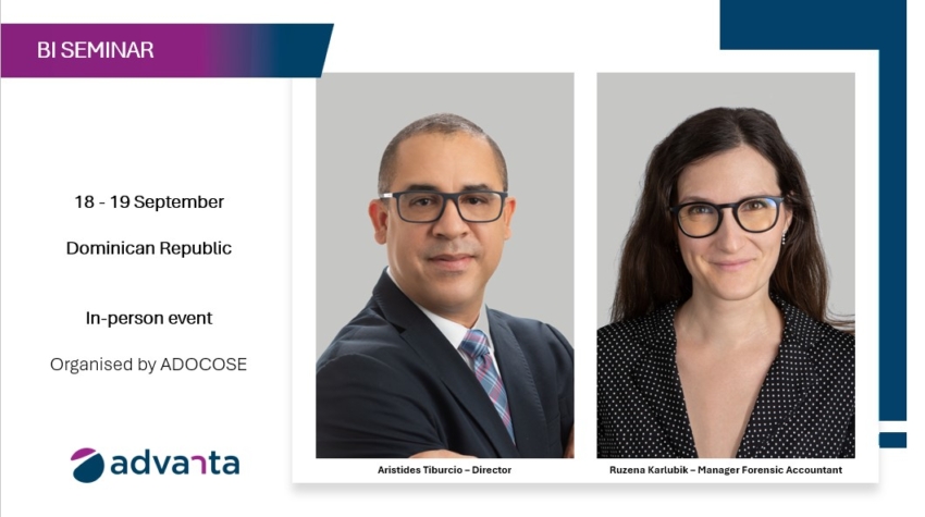 Advanta Global announces that their Dominican Republic Director Arístides Tiburcio and Forensic Accounting Manager Ruzena Karlubik will be delivering a seminar on Business Interruption.